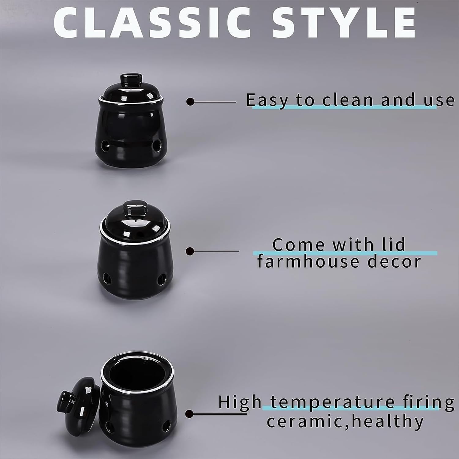 HAOTOP Ceramic Mini Garlic Keeper with Lid, Garlic Container Saver for Countertop, Keep Your Garlic Cloves Fresh (Black)