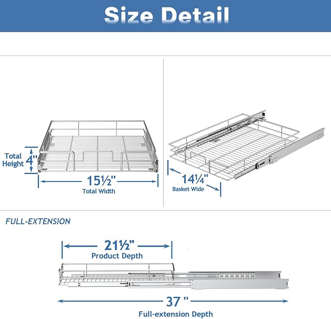 - 3-sections ball bearing slide rail make sure sturdy & smooth, conveniently slides out so you don’t have to dig way back in the cabinet when you are looking for what you need!