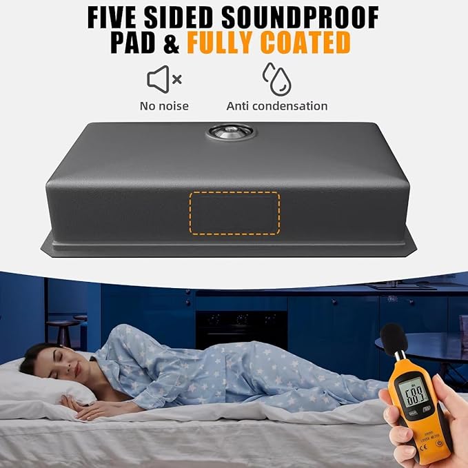 - 16 Gauge undermount kitchen sink, features noise-reducing pads to dampen water flow and thumping, and an anti-condensation coating that prevents water from pooling and keeps cabinets dry for a quiet and comfortable experience ideal for families.