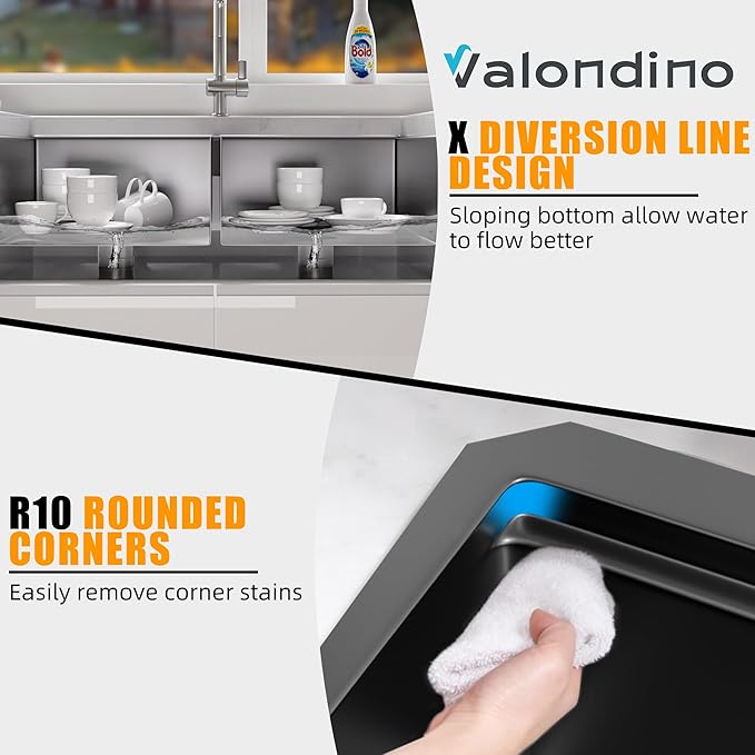 - Stainless steel sink,undermount kitchen sink 304 stainless steel , with a modern black coating on the surface, corrosion-resistant, rust proof, scratch resistant, durable and easy to clean, ensuring long-term use and easy matching with various home styles.