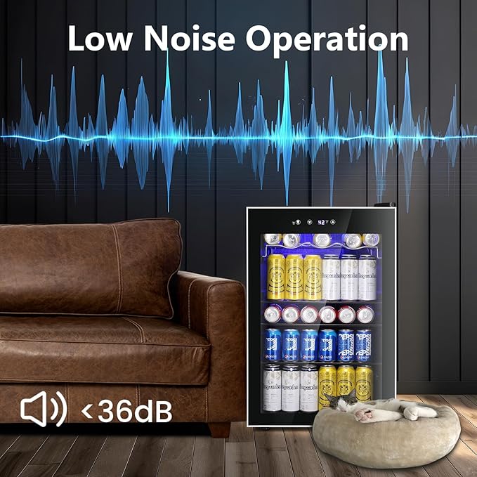 - [Under Counter Beverage Refrigerator]: Whether you are preparing for a party or you want to enjoy fresh drinks anytime, the 4.4 cu.ft beverage refrigerator can fit up to 145 standard cans! Fresh, cool beverage anytime!