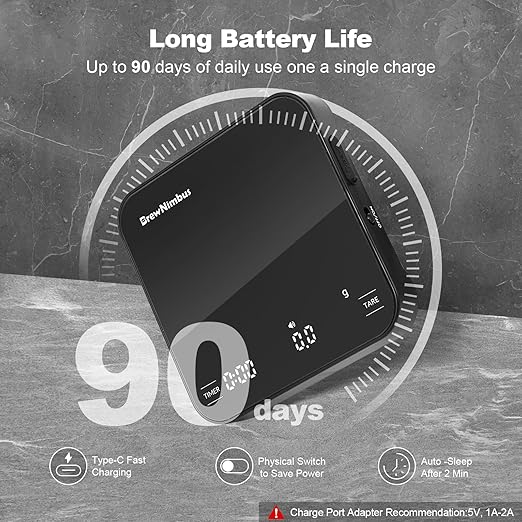 - Silent Brewing for a Peaceful Morning: Enjoy tranquil coffee mornings with the barista scale’s mute function. Simply hold the “Timer” and “Tare” buttons for 2 seconds to turn off the beep, letting you savor the quiet moments of your day without interruption