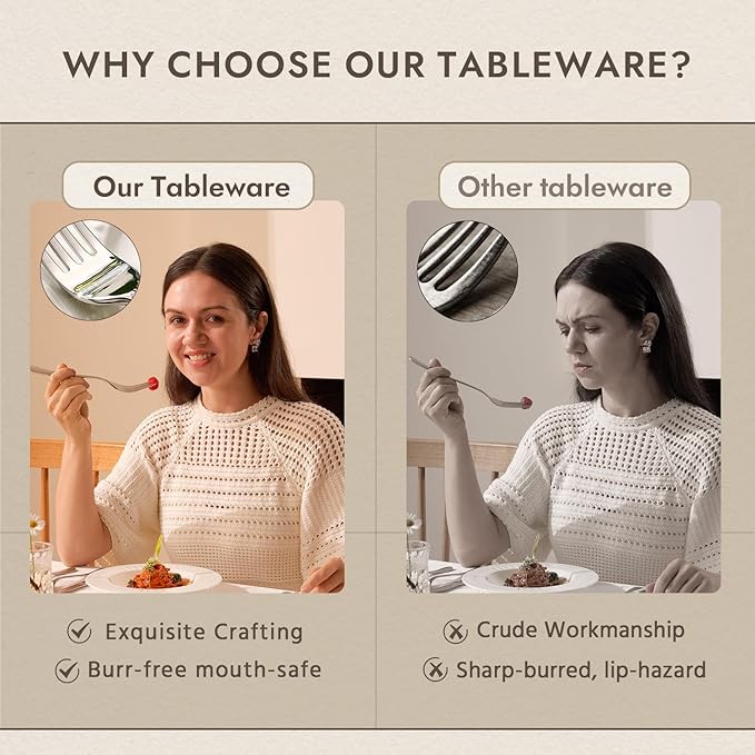 - LUXURY DSEIGN: The handle like a diamond cut design gives the flatware set a sense of luxury, and makes the tableware appear more shining. Luxury design would elevate everyday meals into a fine dining experience.