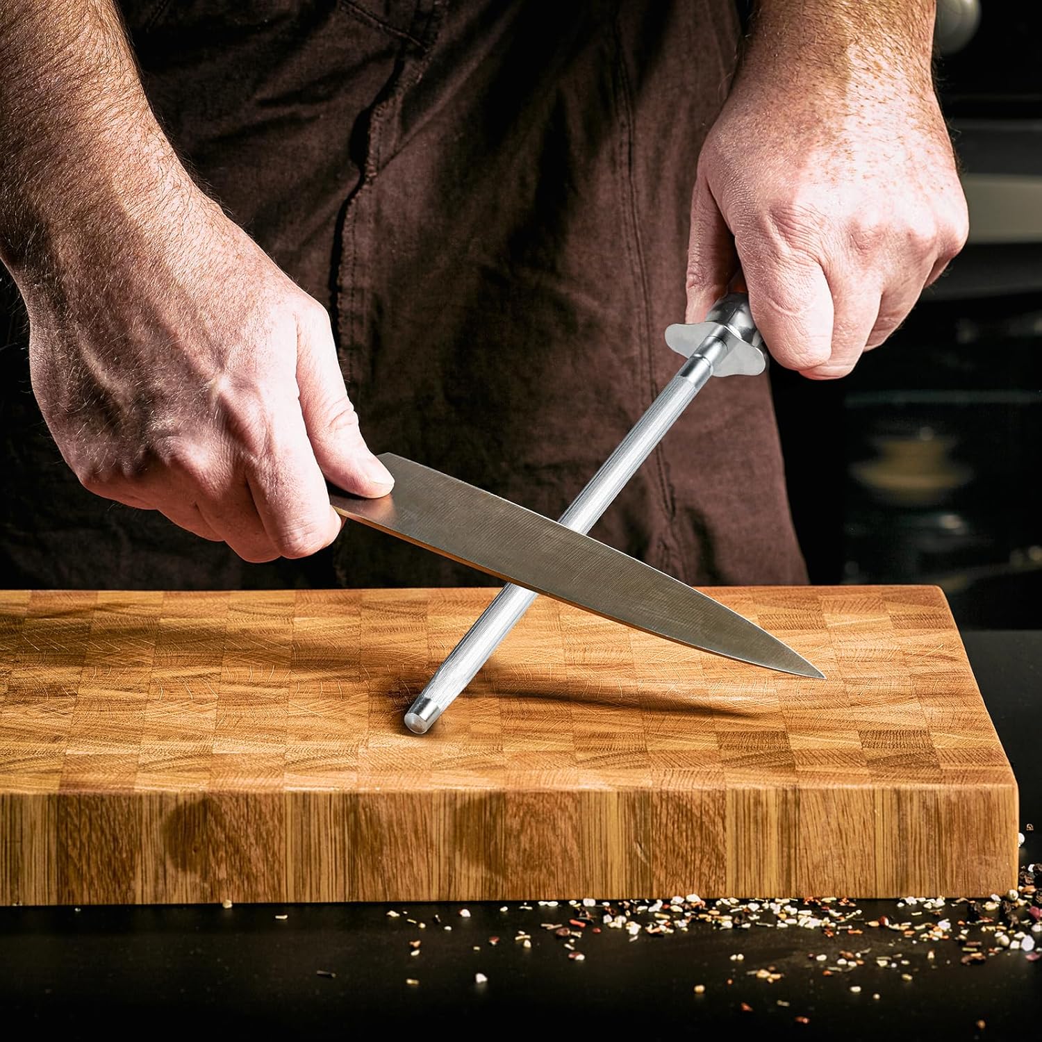 Knife Sharpener Rod, Kitchen Knives Sharpener Carbon Steel Professional Knife Sharpening Steel, Honing Rod with Hanging Holes (13 inches), X