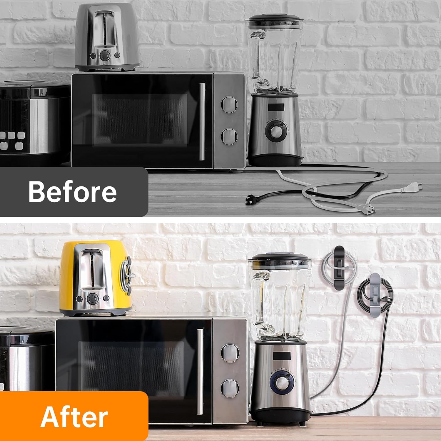 - Upgraded Cord Organizers: This upgraded cable organizer has reduced size and increased space, making it suitable for organizing 90% of kitchen appliances. Equipped with three slots, it can perfectly grip wires of different diameters.