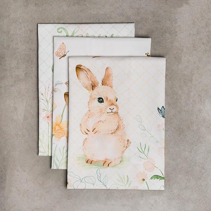 Maison d' Hermine Kitchen Towels Set of 3 100% Cotton 27.50" x 20" Reusable Cloth Tea Dish Towels Absorbent with Hanging Loop for Kitchen, Home, Dining, Cocktail Parties Spring/Summer (Easter Dew)