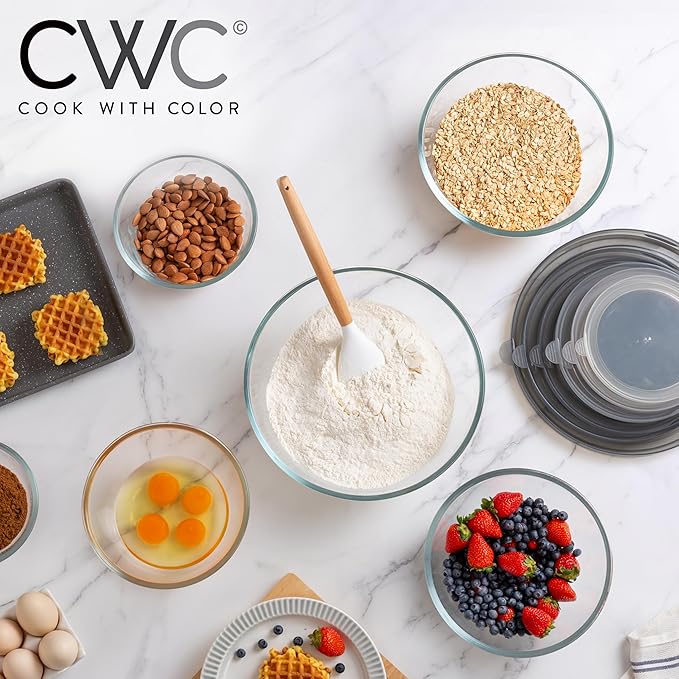 COOK WITH COLOR 12 Pc Glass Mixing Bowl Set with Lids – Borosilicate Glass Nesting Bowls for Cooking, Baking and Meal Prep, Gray