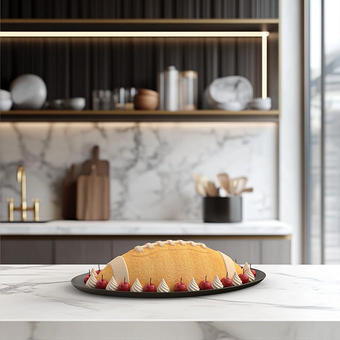 - Food-Grade Silicone Football Cake Mold: Crafted from premium, BPA-free silicone, our football cake mold ensures your baking is not only delicious but also safe. It’s designed for direct food contact and features a non-stick surface that lets your creations pop out with ease, making it a reusable favorite for every baker