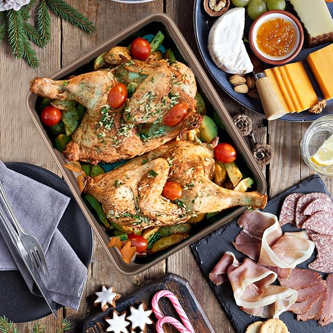 - Nonstick Coating for Easy Release: The baking sheet pans nonstick baking pans cookie sheet brownie pan nonstick surface prevents food from sticking, ensuring flawless baked goods every time. Ideal for cookies, brownies, and bread. Enhance your baking with nonstick baking sheet pans and toaster oven trays