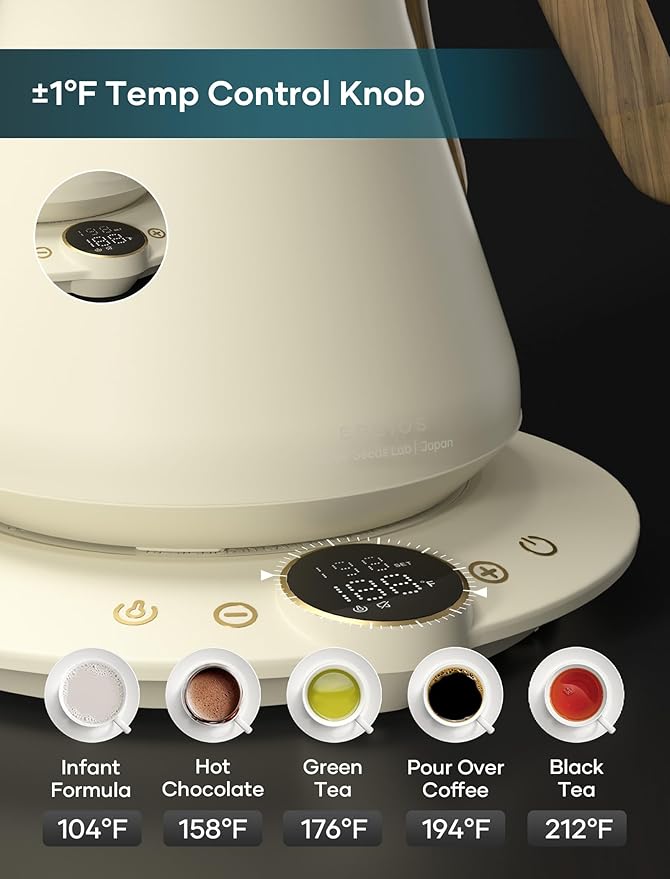 - ±1℉ Precise Temperature Control – Smart power adjustment keeps water within ±1℉ of your target, so every brew is café-precise and full of flavor.