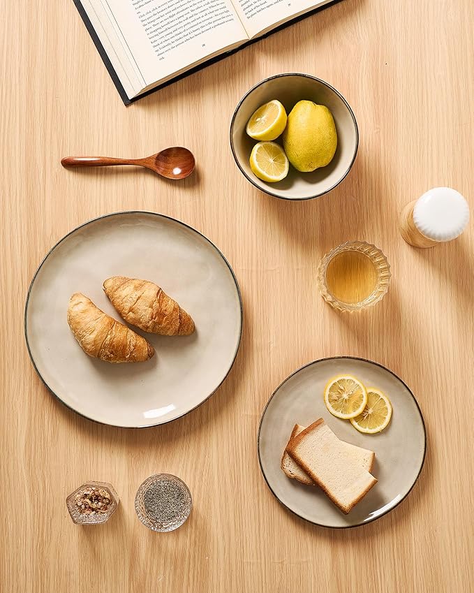 - 【Double Reactive Glaze】Double reactive glaze are combined through firing at high temperatures to create a special and fantastic glaze color. The color of the same set of tableware may have some differences, so that each plate and bowl is unique. This glaze also tends to show different colors depending on the light. The color may be a little different from what you see on the screen