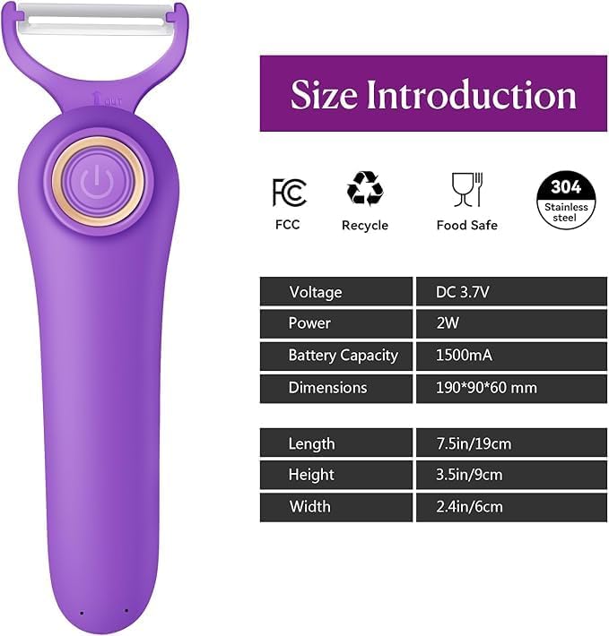 - 【Practical Versatile Electric Peeler】Our potato peeler provides a convenient way to peel or slice potatoes, sweet potatoes, tomatoes, apples, pears, oranges, cucumber, cabbage, beet, rutabaga, radish, papaya and more. saving you valuable time and money.