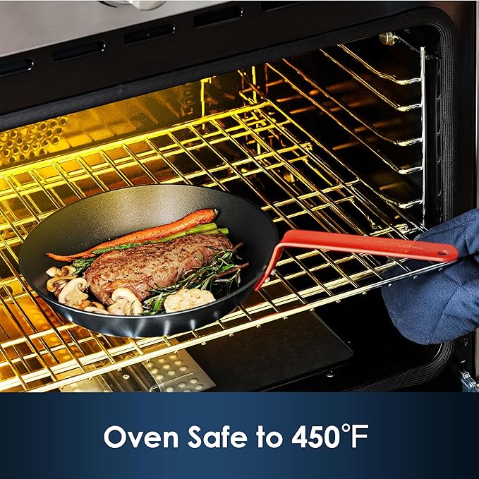 - Scratch-Resistant Anodized Exterior: The anodized exterior of the pan is 10X more long-lasting and resistant to scratches than traditional cookware. No more worrying about the coating peeling or chipping, even with daily use.