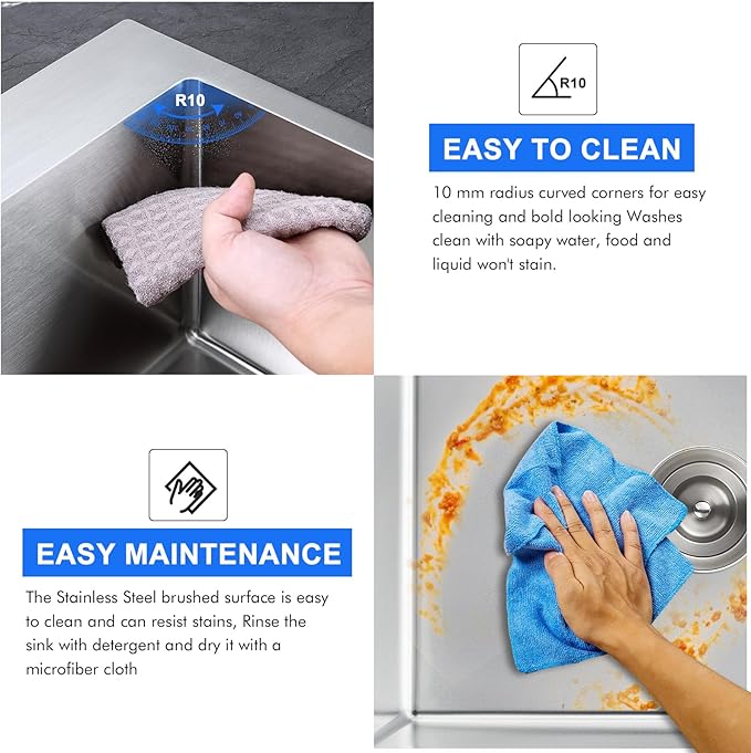 - 【Sound absorption】Equipped with Anti-Noise technology, the single bowl sink includes thick heavy-duty coating and extra-thick rubber padding covering over 50% of the sink area. This innovative design absorbs vibrations and noise from dishwashing and collisions, creating a quieter kitchen ambiance