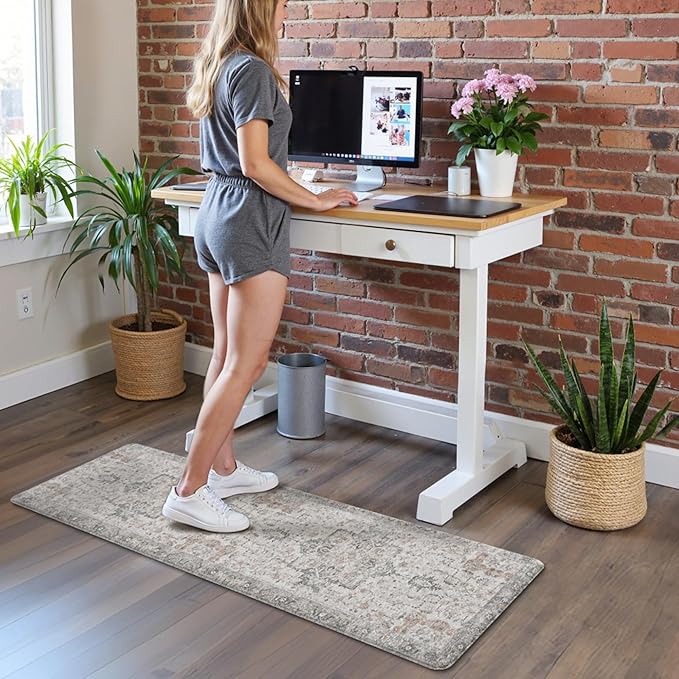 GENIMO Kitchen Mats for Floor, Washable Anti Fatigue Mat for Cushioned, Waterproof Kitchen Rugs, 17.3"x59", Non Slip Comfort Standing Mat Rug for Home, Runner, Sink, Office, Laundry, LightTaupeBrown