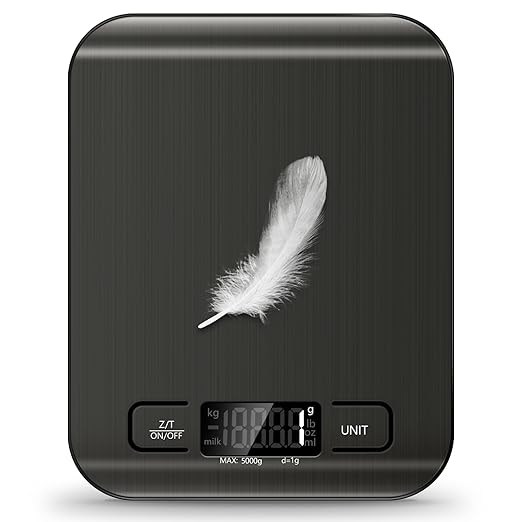 Food Scale, 11lb Kitchen Scale with 6 Units Tare Function & LCD Display, 0.05oz/1g Stainless Steel Digital Food Scale Grams and Ounces for Baking, Cooking, Dieting and Meal Prep (Black)