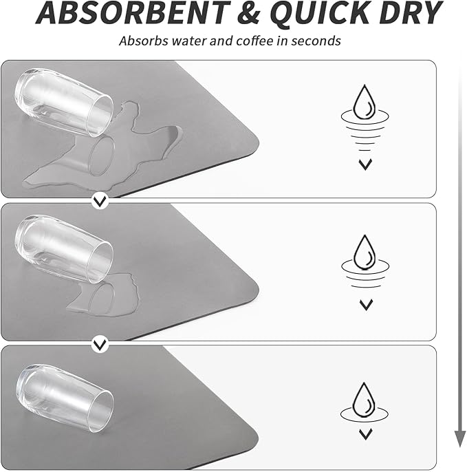 - ☕【Wide range of uses】 It is not just a coffee bar mat, but also a high water absorption and quick dry pad that can be widely used as a drying mat for kitchen countertop, cups, water dispensers, mixers, ice cream machines, dish washing racks, dinner plates, tableware, etc., or as a food pad for pets.