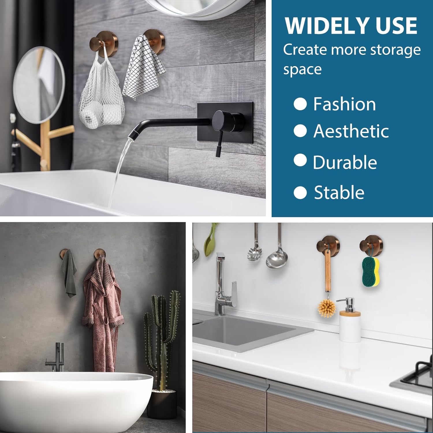 Suction Cup Hooks for Shower, 2 PCS No-Drill Towel Holder for Bathrooms Wall, Glass Door, Mirror, Tiles, Kitchen, Hold Robe & Wreath, Hanging up to 15 lbs – Waterproof & Rustproof, Loofah-Gold Rose