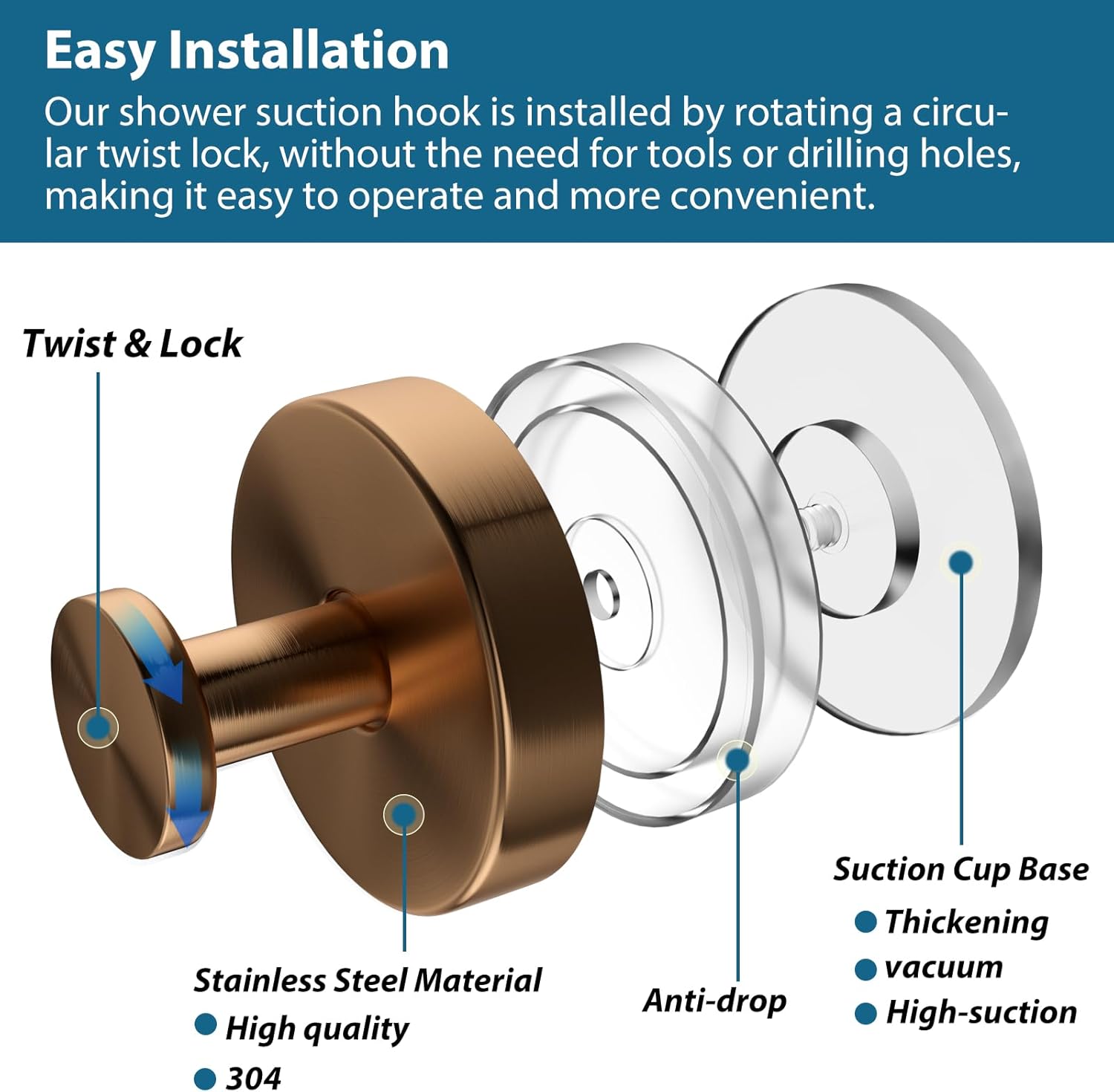 - 【No Screws Required & Reusable】 The stylish shower suction cup hook is made of waterproof and rust-proof 304 stainless steel material, and the excellent vacuum suction technology allows you to easily install and remove without tools or screws. Pry it out with a knife, clean the bottom of the command hooks and dry it for reuse.