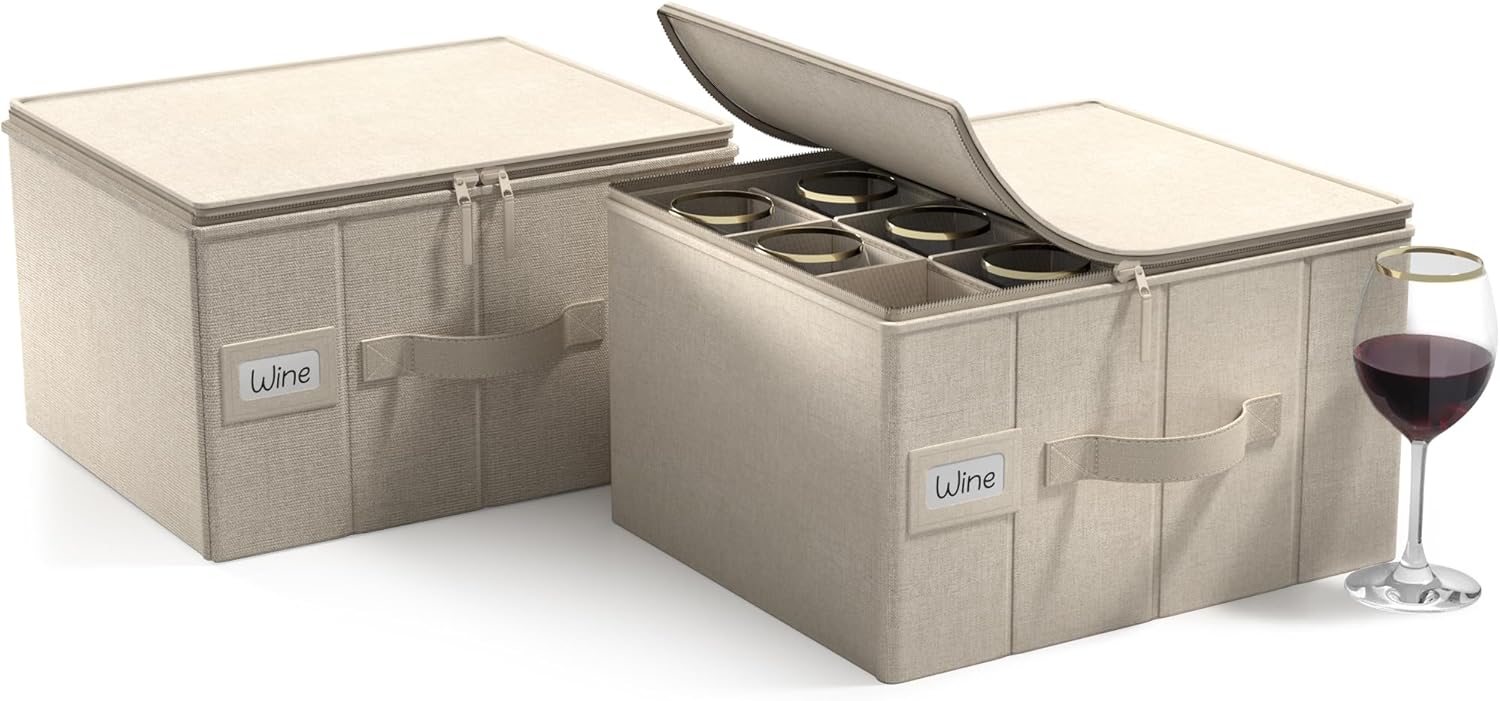 - Sorbus China Stemware Storage Case (Beige): This wine glass storage box with dividers helps keep cherished stemware in mint condition, dust-free, and ready to entertain - Wine box fits 12 wine glasses