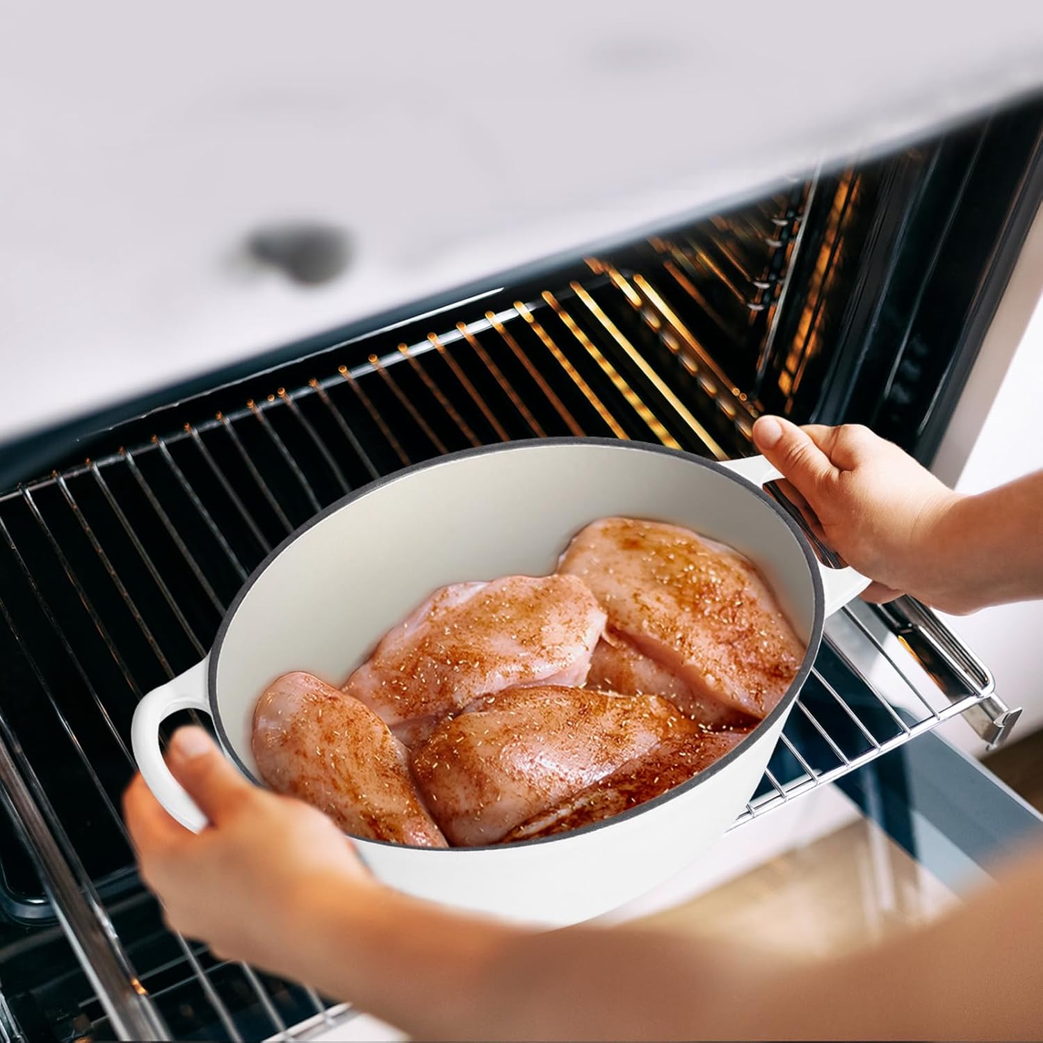 7 Quart Oval Dutch Oven with Lid, Leonyo 7QT Enameled Oval Cast Iron Dutch Oven for Sourdough Bread Breaking, Heavy Duty Cookware for Braising, Stews, Roasting, White