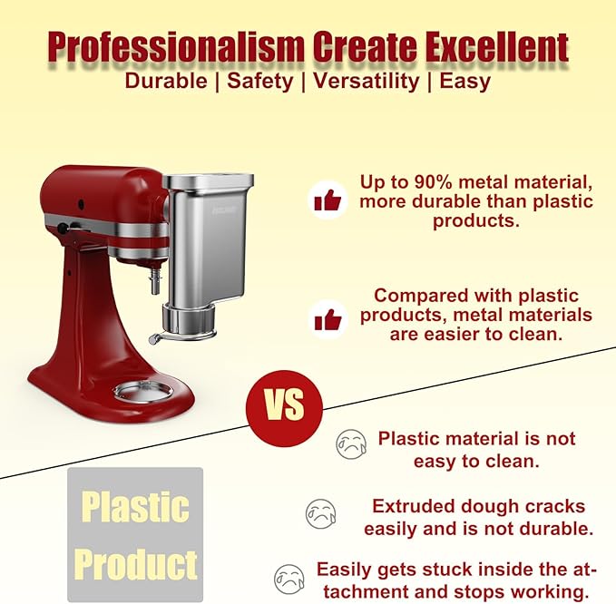 - Compatible with All KitchenAid Mixers – Easily create fresh, homemade pasta with the Eascandy Gourmet Pasta Press Attachment, designed to fit for KitchenAid Stand Mixers.