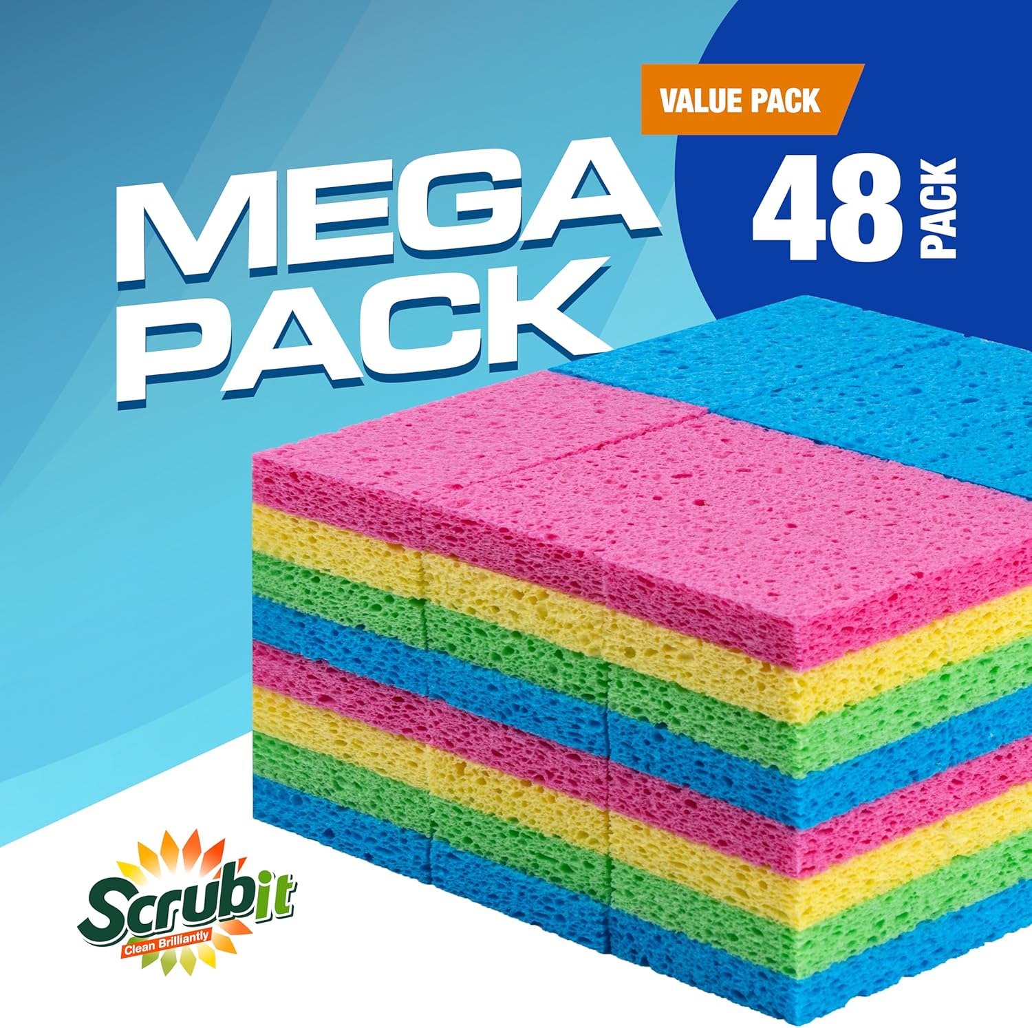 SCRUBIT 48-Count Sponges Kitchen for Dishes Cleaning - Non-Scratch Dish Scrub Sponge - Packaging May Vary, Natural Cellulose Kitchen Sponges