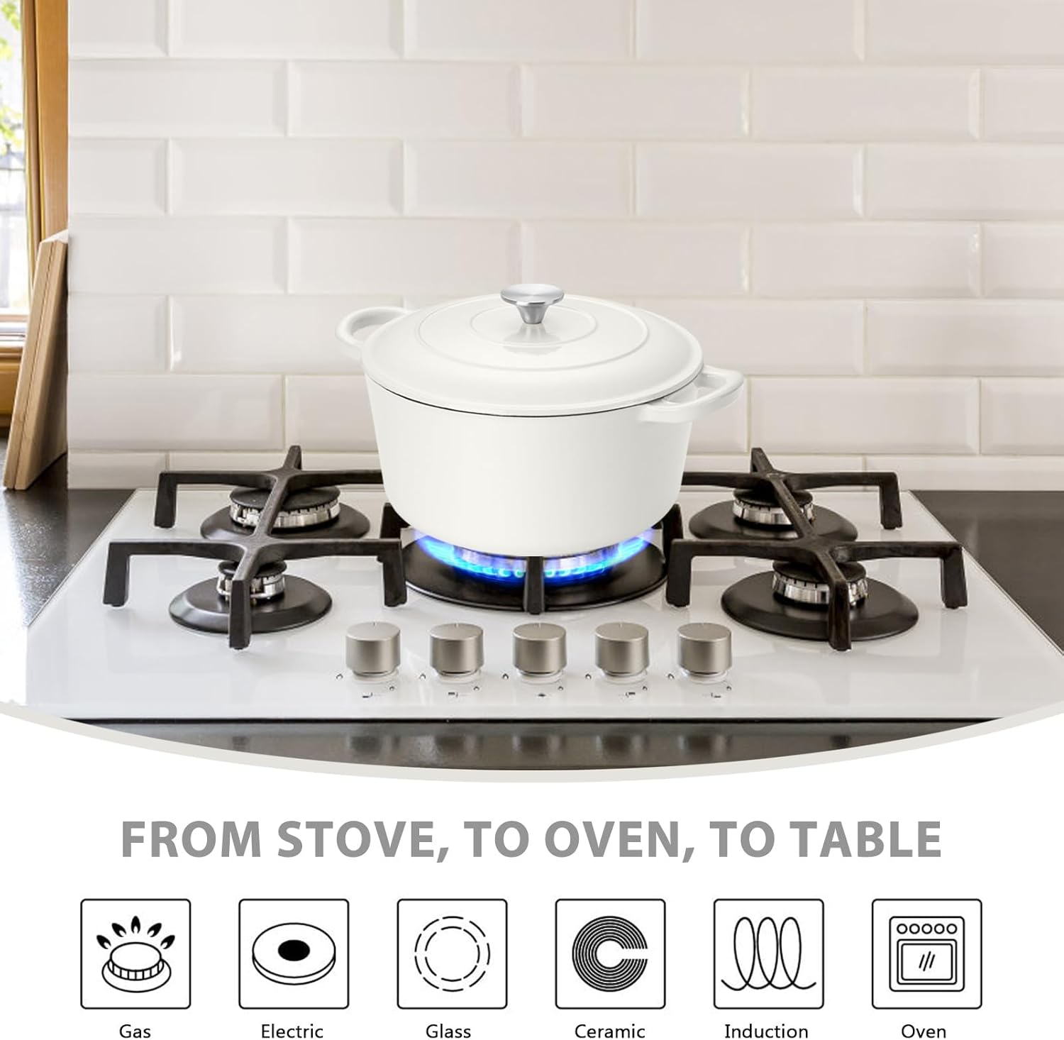 3 Qt Enameled Cast Iron Dutch Oven with Lid, E-far Small Round Nonstick Dutch Oven Pot for Bread Baking Braising Stews Roasting Cooking, Heavy Duty, Induction & Oven Safe - White