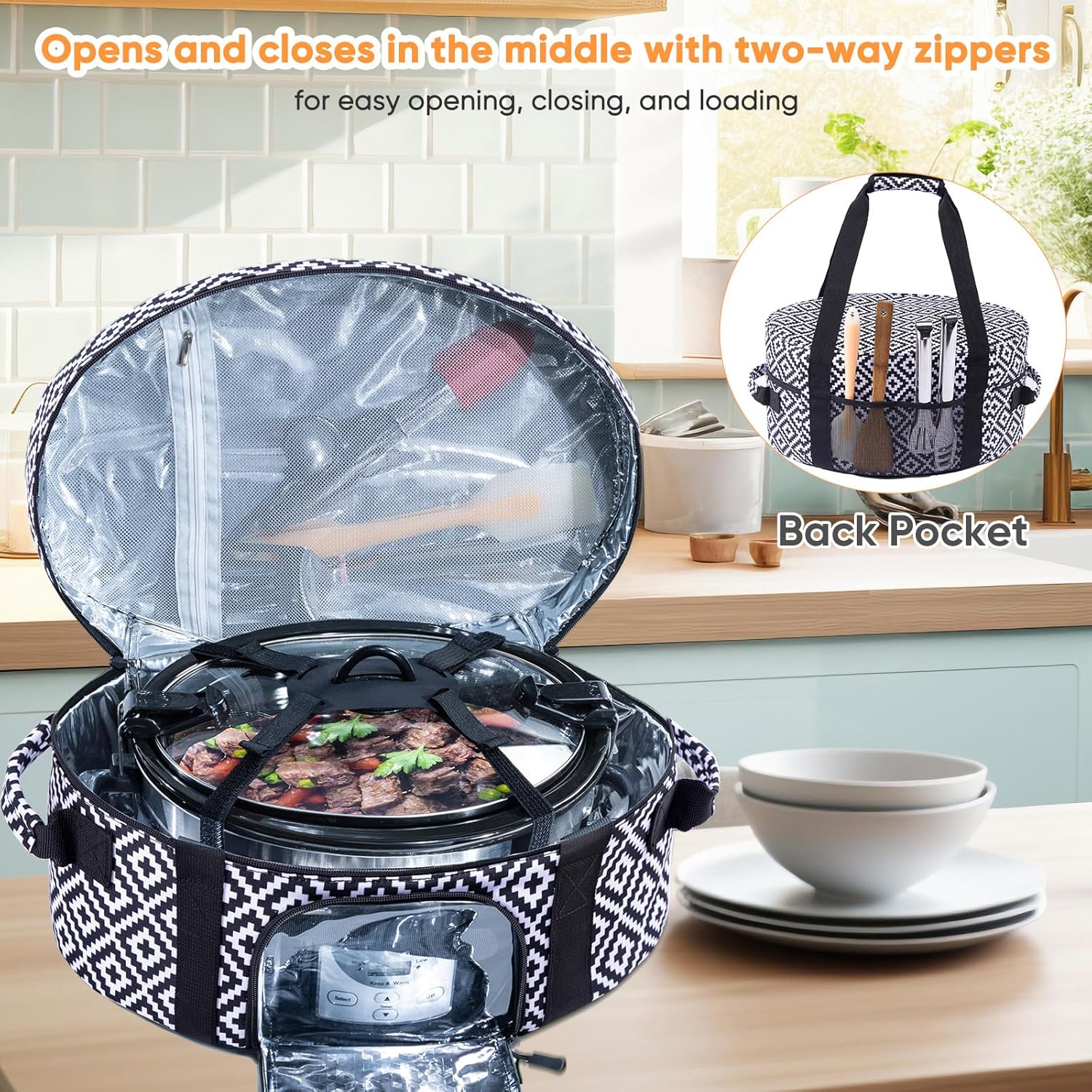 - Easy to Carry: With the two-way zippers in the middle, make it easy opening, closing and loading. And this slow cooker travel bag has two handles or straps on two sides, it is very handy for transporting the crok pot everywhere.