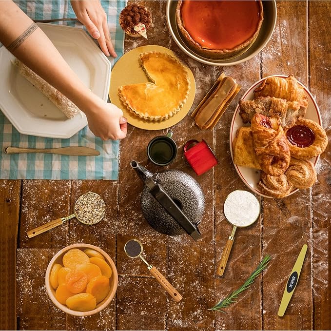 - [Engraved Markings for Accuracy] - Deeply engraved US and metric measurements on the acacia wood handles eliminate fading or guesswork — ensuring exact amounts every time you cook or bake.