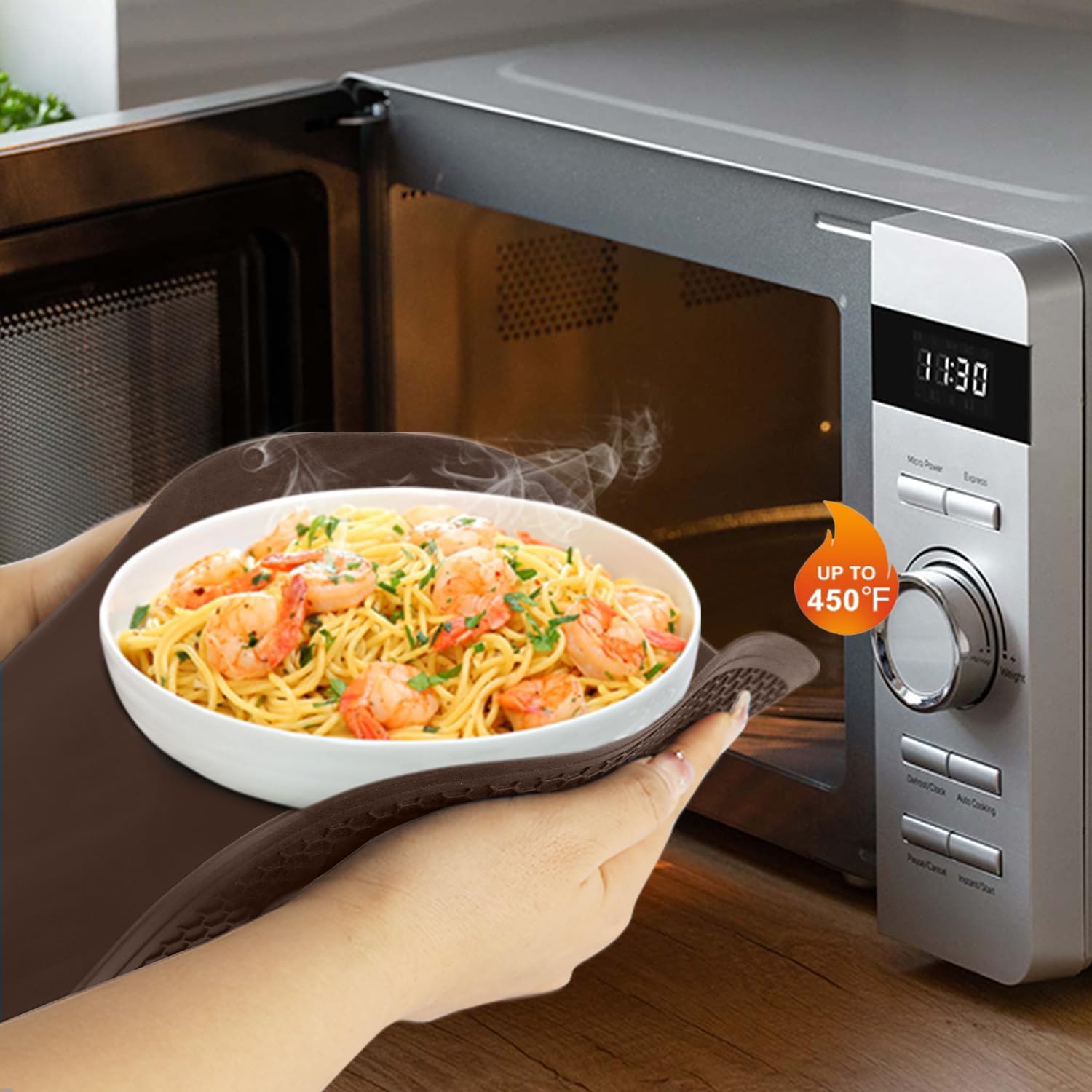 - 🥘【Better Circulation】: Our brown microwave mat has 2mm anti-slip Texture that helps dissipate heat faster. Features raised edge to help effortlessly lift hot bowls and plates while protecting from heat. These silicone trivet mats are heat protection and insulated as a protector for countertops. Heat-resistant temperature from -40°F-446°F(-40°C to 230°C), safe for use in the oven, freezer, microwave, and as a pot holder, trivet, jar opener, spoon rest or anywhere you need extra grip or extreme heat.