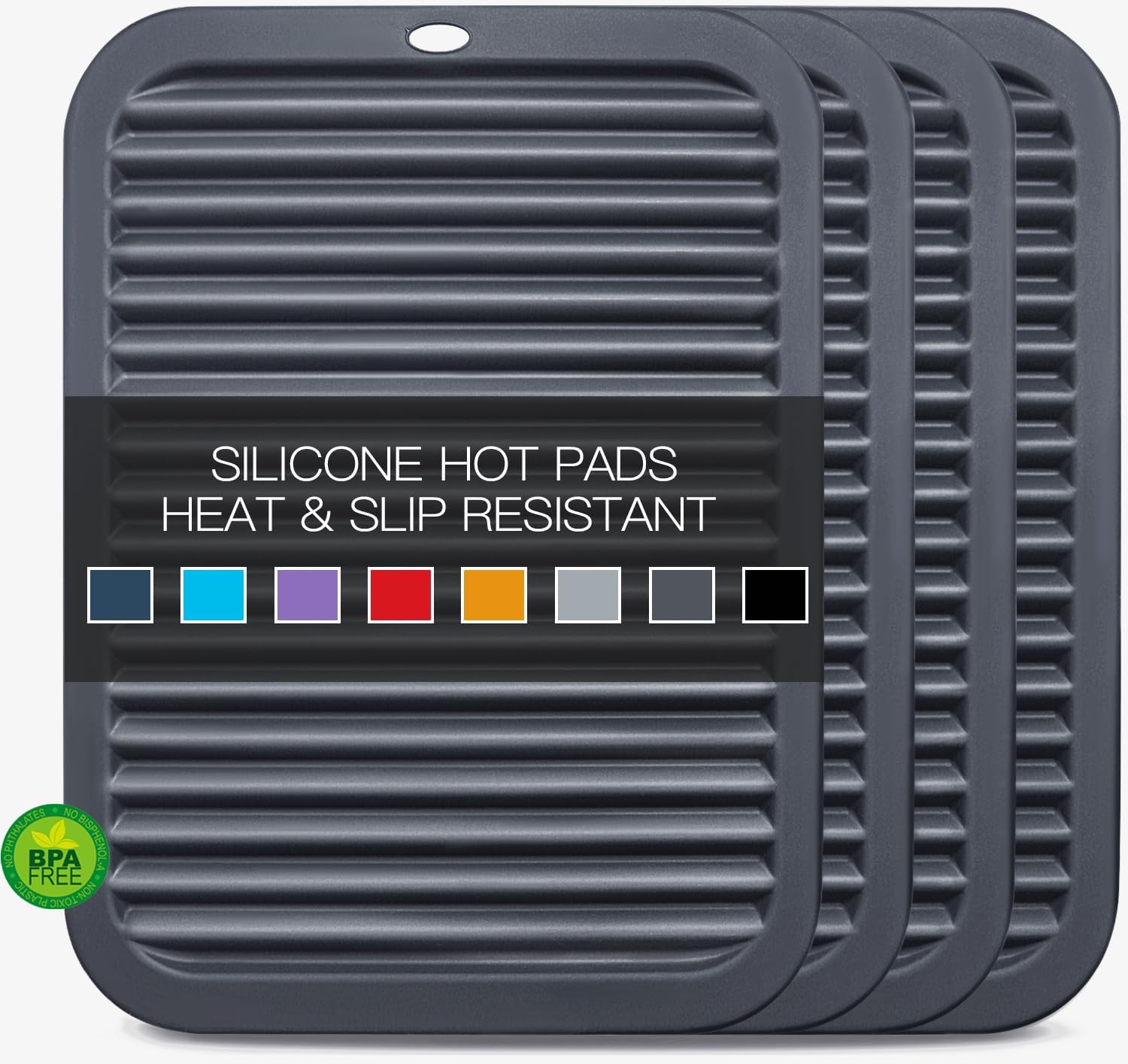 - 🍳Easy To Clean & Store: The dark grey silicone pot holders for kitchen are easy to clean, wipeable, and dishwasher safe. Almost everything can be easily washed off from surfaces and dry quickly. Roll up or hang it on a hook; save valued kitchen space!