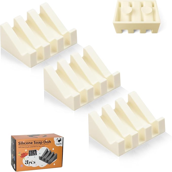 Self Draining Soap Dish,Silicone Suction Cup Soap Holder, Bathroom Soap Dish for Bar Soap,Can Extend Soap Life,Bathroom, Bath Tub, Kitchen Sink (3, Cream White)