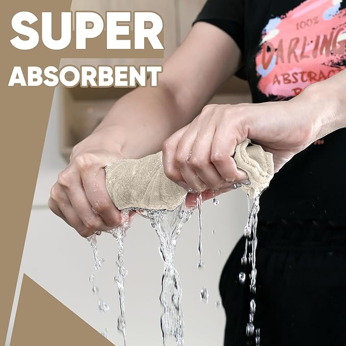 - ABSORBENT & LONG-LASTING TOWELS AND DISHCLOTHS: 4pcs large kitchen towels and 4 pcs small dishcloths are all made of pure spun cotton with waffle weave patterns. These materials are greatly absorbent, quick drying and breathable. The selected fabric is long-lasting and reusable. Drying in time after washing can increase the service life