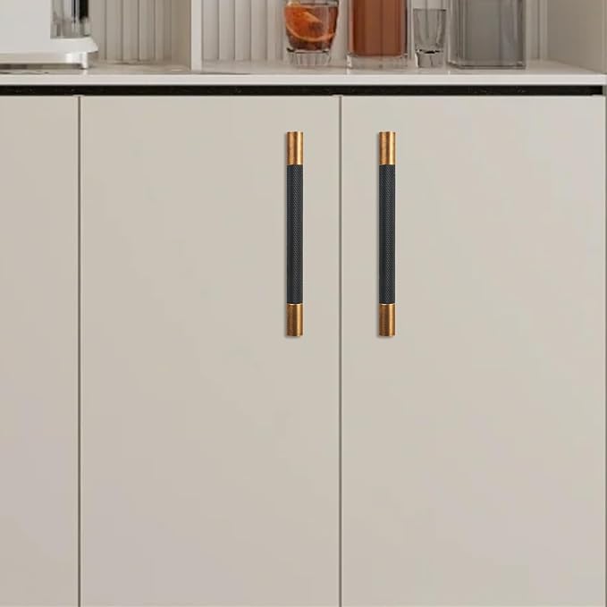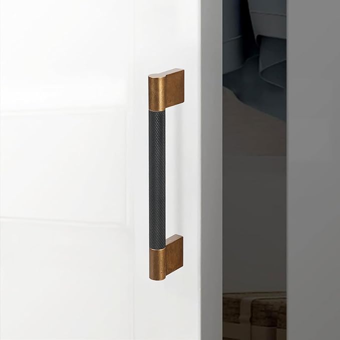 10 Pack 5 inch(128mm) Black and Antique Brass Kitchen Cabinet Handles Knurled Cabinet Pulls Black Drawer Pulls Kitchen Cabinet Hardware