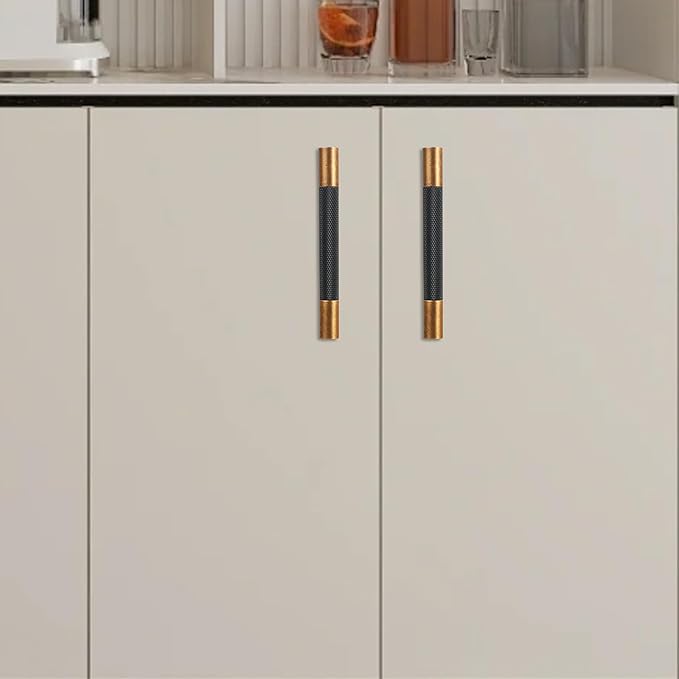 10 Pack 3-3/4 inch(96mm) Black and Antique Brass Kitchen Cabinet Handles Knurled Cabinet Pulls Black Drawer Pulls