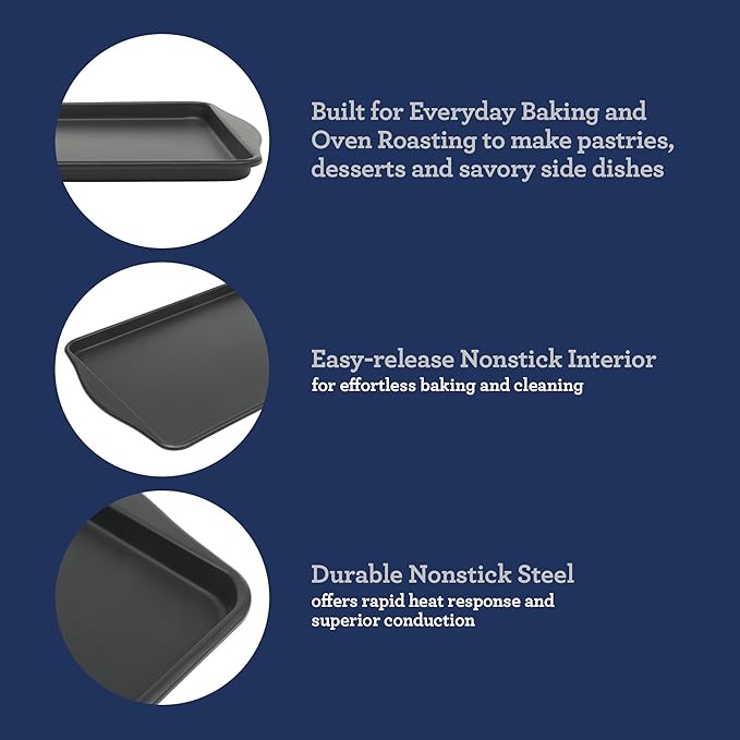 - EASY-RELEASE NONSTICK PERFORMANCE: Perfect for making pastries, desserts and side dishes, this cookie sheet is easy to clean and is designed to everyday use