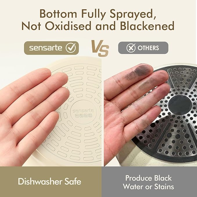 - Dishwasher Safe - This pots and pans set is dishwasher safe with coated bottom, prevents black residue after washing. Hand washing is recommended and only requires a light wipe.
