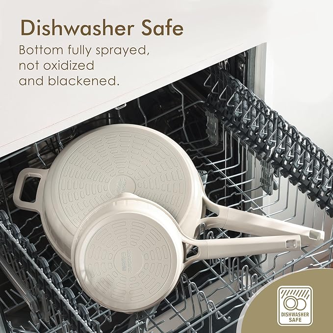 - Natural Nonstick - Ceramic non-stick is healthier and scratch-resistant with excellent food release. Only less oil is needed for cooking, for a healthy, low-fat diet.