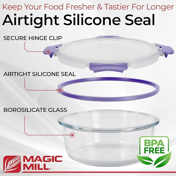 - MAGIC MILL'S ULTIMATE GLASS FOOD STORAGE CONTAINERS – Transition from plastic to a sustainable lifestyle with our premium glass food storage containers made from high-quality borosilicate glass, designed to last and offer a long-term solution for storing your favorite meals and ingredients.
