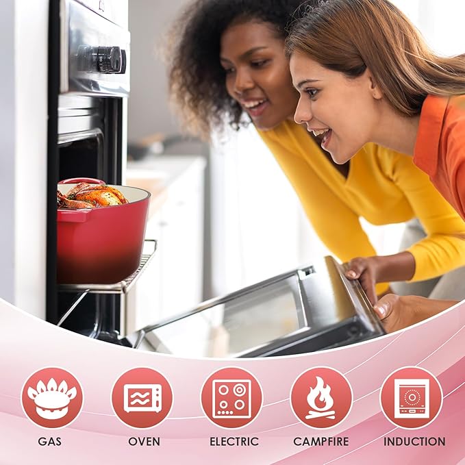 - PRACTICAL FUNCTIONS- Our enameled cast iron dutch oven with lid is built with craftsmanship of sturdiness and durability which is essential to a long lifespan. The bottom and sides of the pot assures even heat distribution. The lid fits tightly which helps to lock in moisture in an effective way. All together just to ensure your food at its best taste and texture.