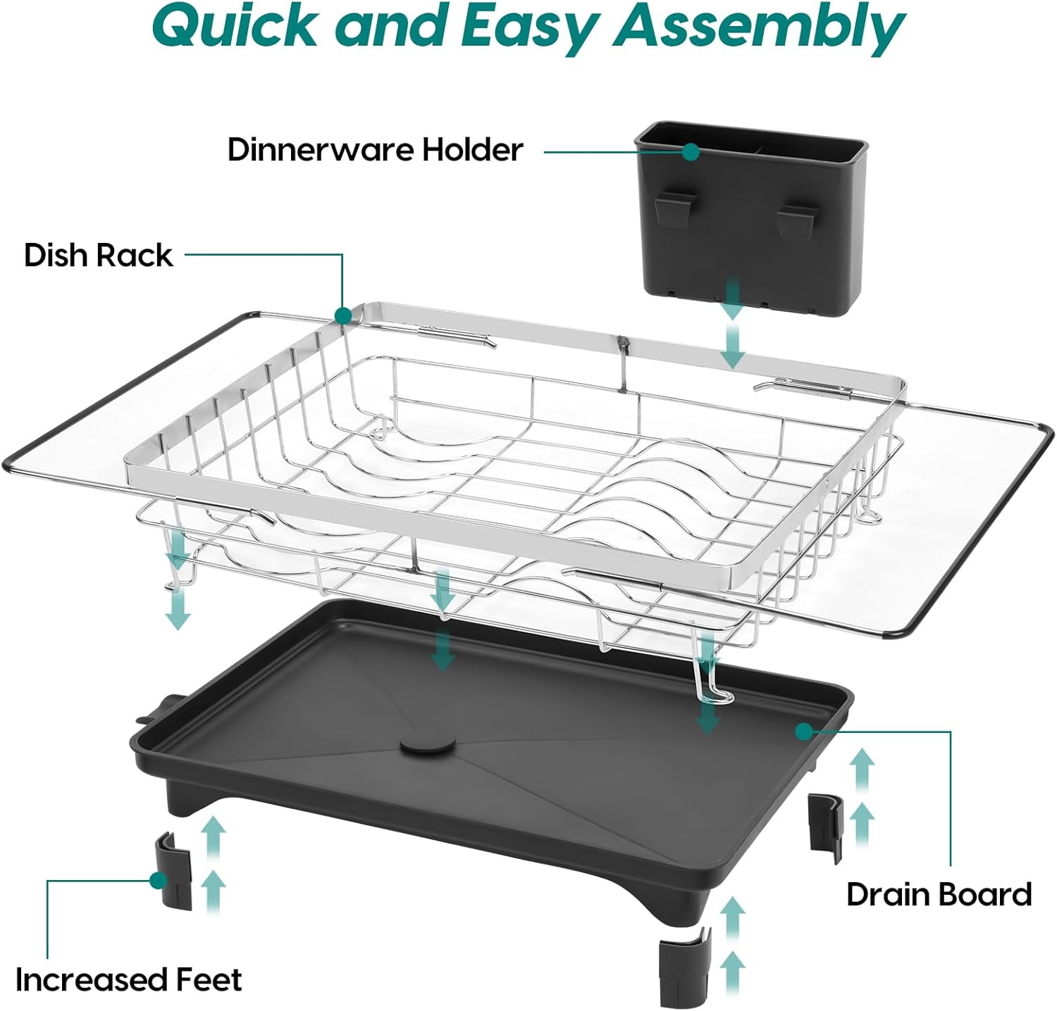 - š [RUST-PROOF & STRONG CONSTRUCTION] This high quality stainless steel sink drying rack with drain board is easy to maintain. It is corrosion-resistant, rust-resistant, load-bearing and warp-resistant. The non-slip rubber telescopic arms provide stability, preventing it from moving or falling into the sink during use and protecting the countertop and sink from scratches. Easy to clean, simply rinse under the faucet.