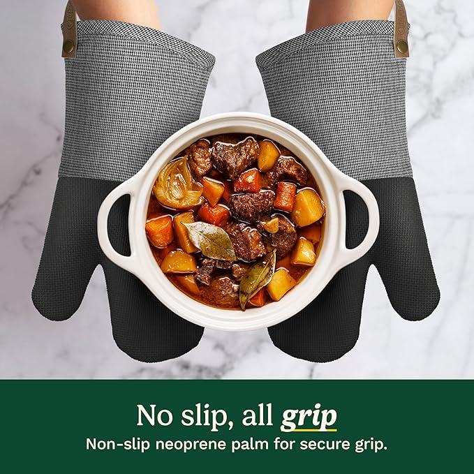- BAKE SAFELY WITH LONG CUFF: Designed with an extended cuff to protect your wrists and lower forearms from burns; these oven mitts are perfect for safely reaching into the oven and handling hot trays or dishes, making them an essential part of your kitchen oven mitt set.