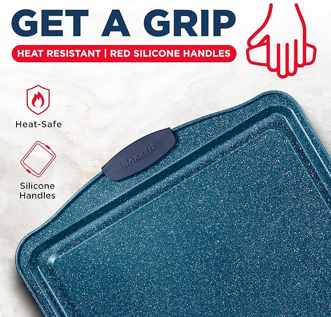 BAKKEN Kitchen Baking Pan Set - Nonstick Coating, Carbon Steel Bakeware Sets with Blue Silicone Handles, Baking Kitchen Essentials, PFOA, PFOS, PTFE Free, Oven Safe Tray (Up To 450° F), Set of 10