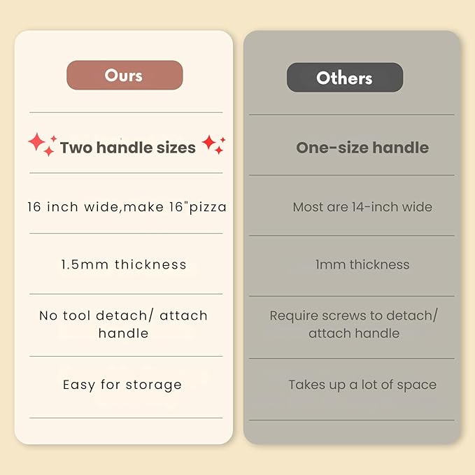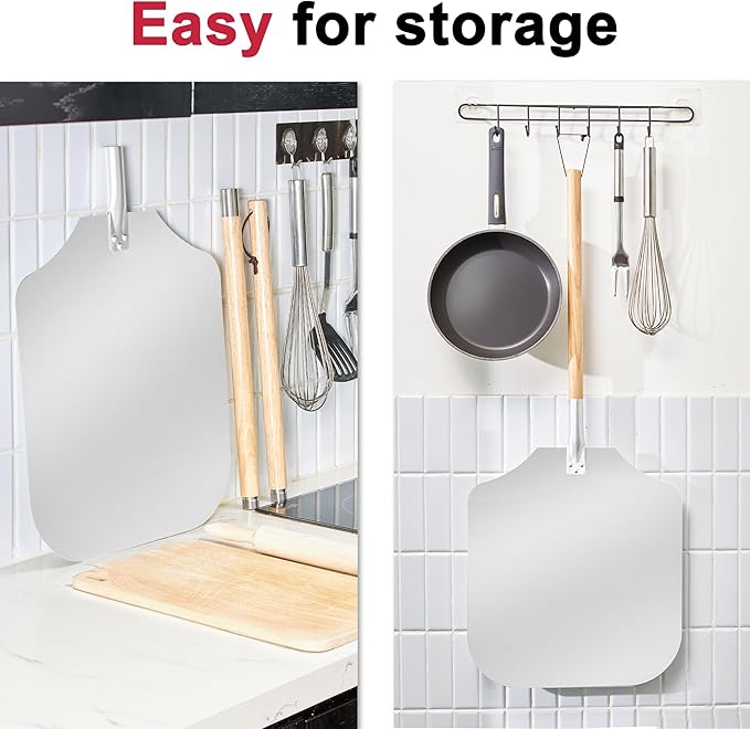 - EASILY DETACH HANDLE FOR EASY STORAGE: set up/store your pizza peel without any tool! Simply loosen/tighten the handle of the pizza peel with just your hand