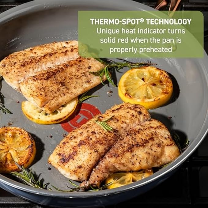 - ๐๐ฅ๐ญ๐ข๐ฆ๐๐ญ๐ ๐๐จ๐ง๐ฏ๐๐ง๐ข๐๐ง๐๐: Oven-safe up to 350ยฐF. Features an even heat base that prevents hot spots and is compatible with all cooktops, excluding induction. Thermo-Spot technology indicates when the pans are perfectly preheated to start cooking. Limited lifetime warranty