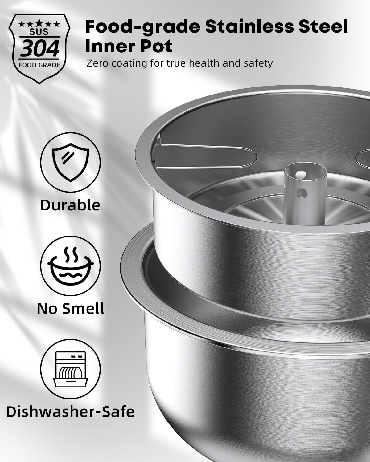 - 【Rice Cooker Stainless Steel Inner Pot】 Cook with confidence using our low carb rice cooker's 304 stainless steel inner pot with a non-stick bottom, free from coatings promoting a healthier cooking environment and easy cleaning. They're dishwasher safe for your convenience.