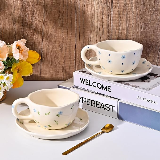 - Adorable Coasters: With creative flower printed saucer; they are a great decoration for your coffee table and you will enjoy your coffee; Whether it's sunny or cloudy or rainy; our cups will always be with you