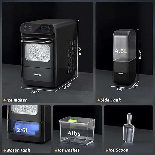 - **Multifunctional and Versatile Use** – INOVIVA Nugget Ice Maker is ideal for a wide range of uses: from creating chewable ice for refreshing drinks and iced coffee to keeping seafood fresh and cold. Whether you're hosting a party, running a café, or enjoying a quiet evening at home, this machine serves all your needs.