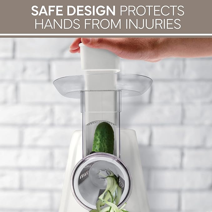 - Powerful 150W Motor for Efficient Performance: The high-powered motor ensures quick and precise grating and slicing, making it ideal for handling tougher ingredients like root vegetables and harder cheeses with minimal effort.
